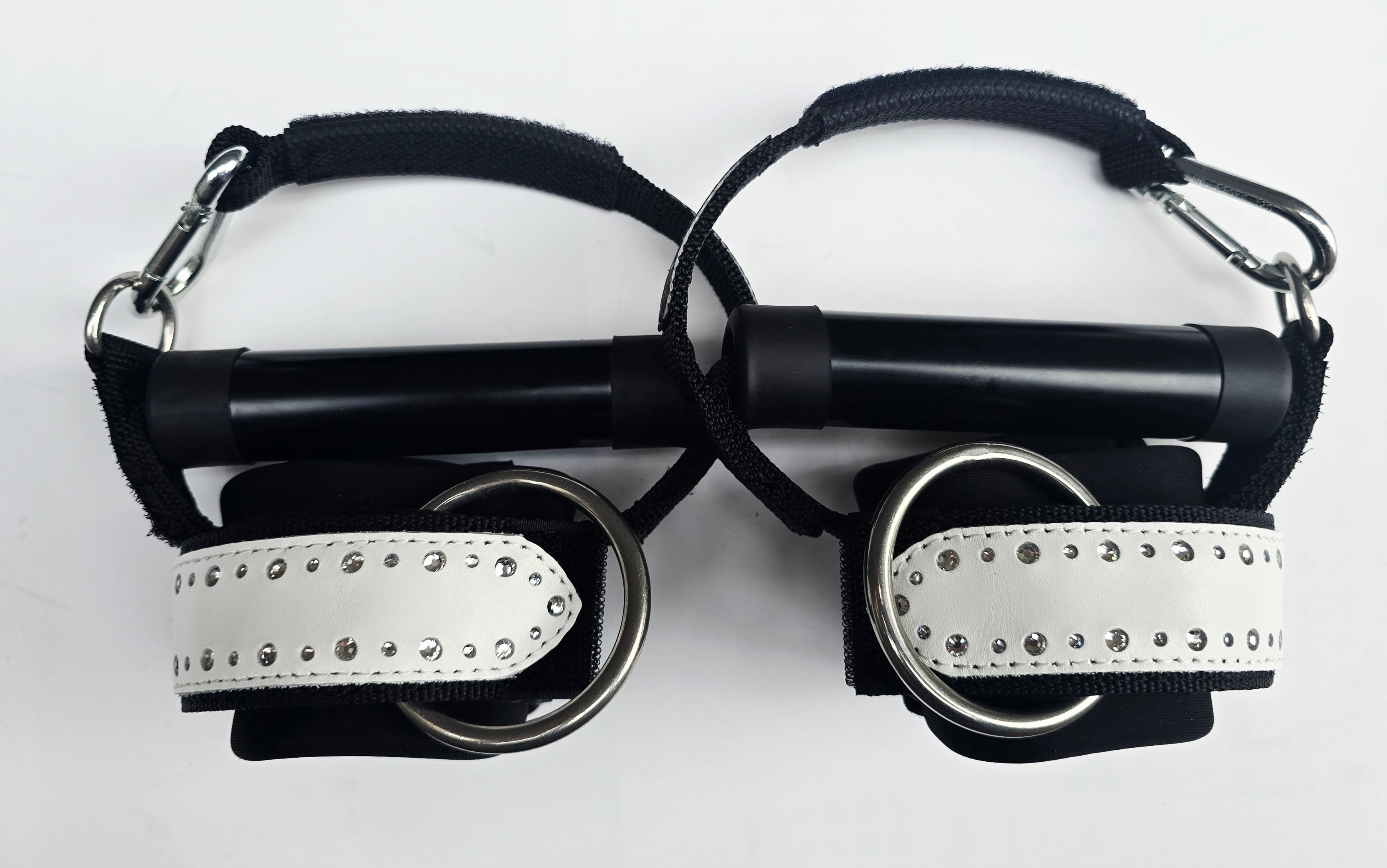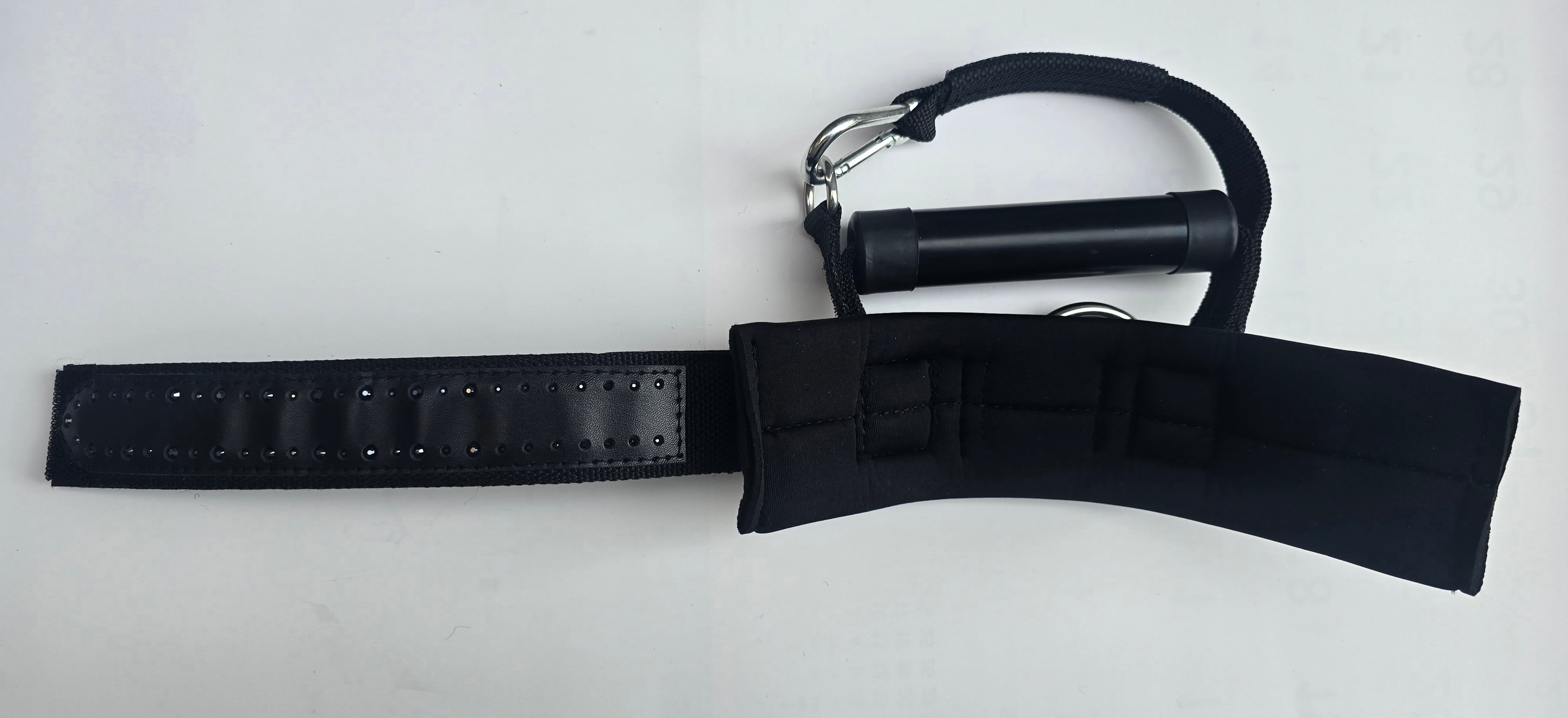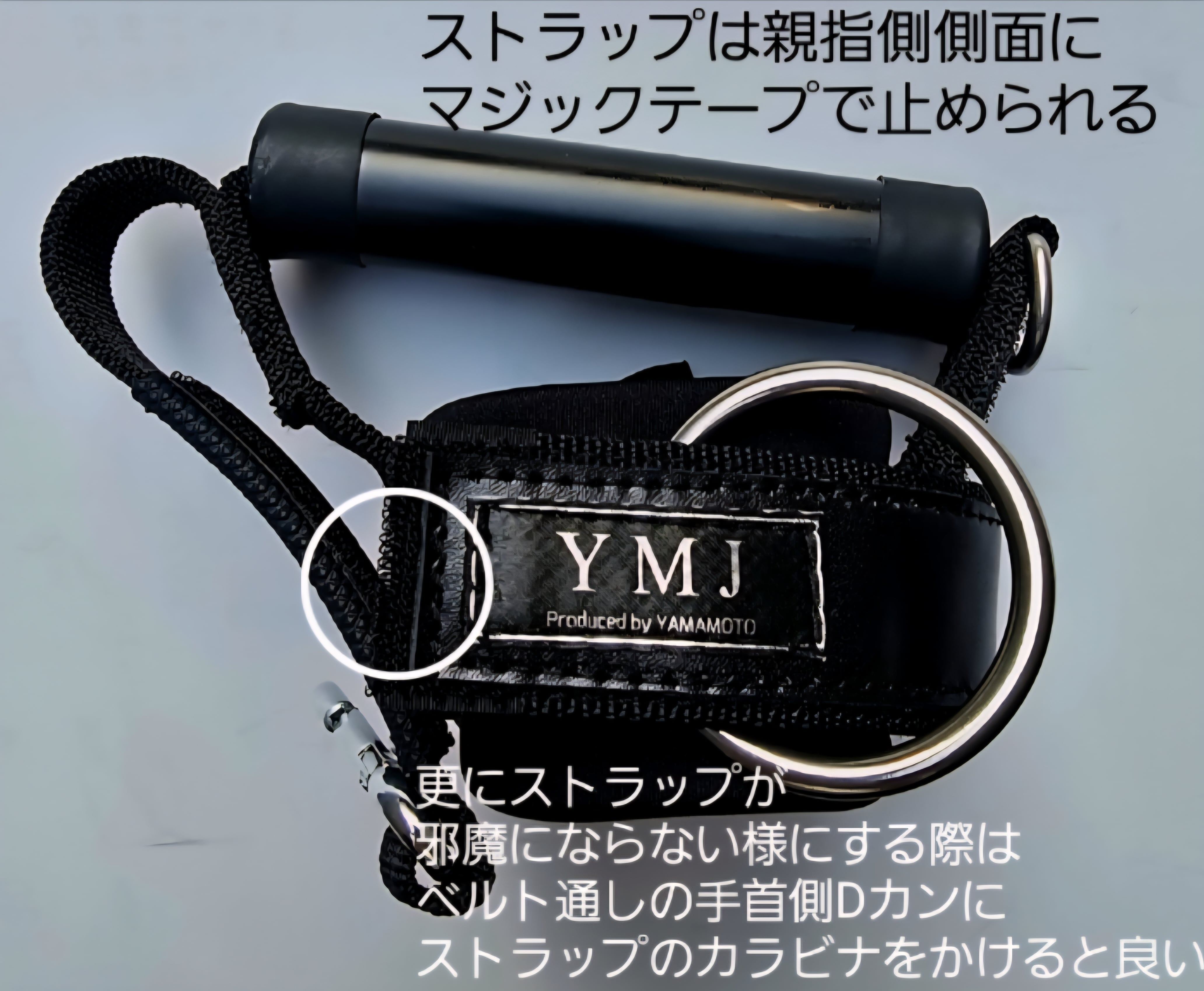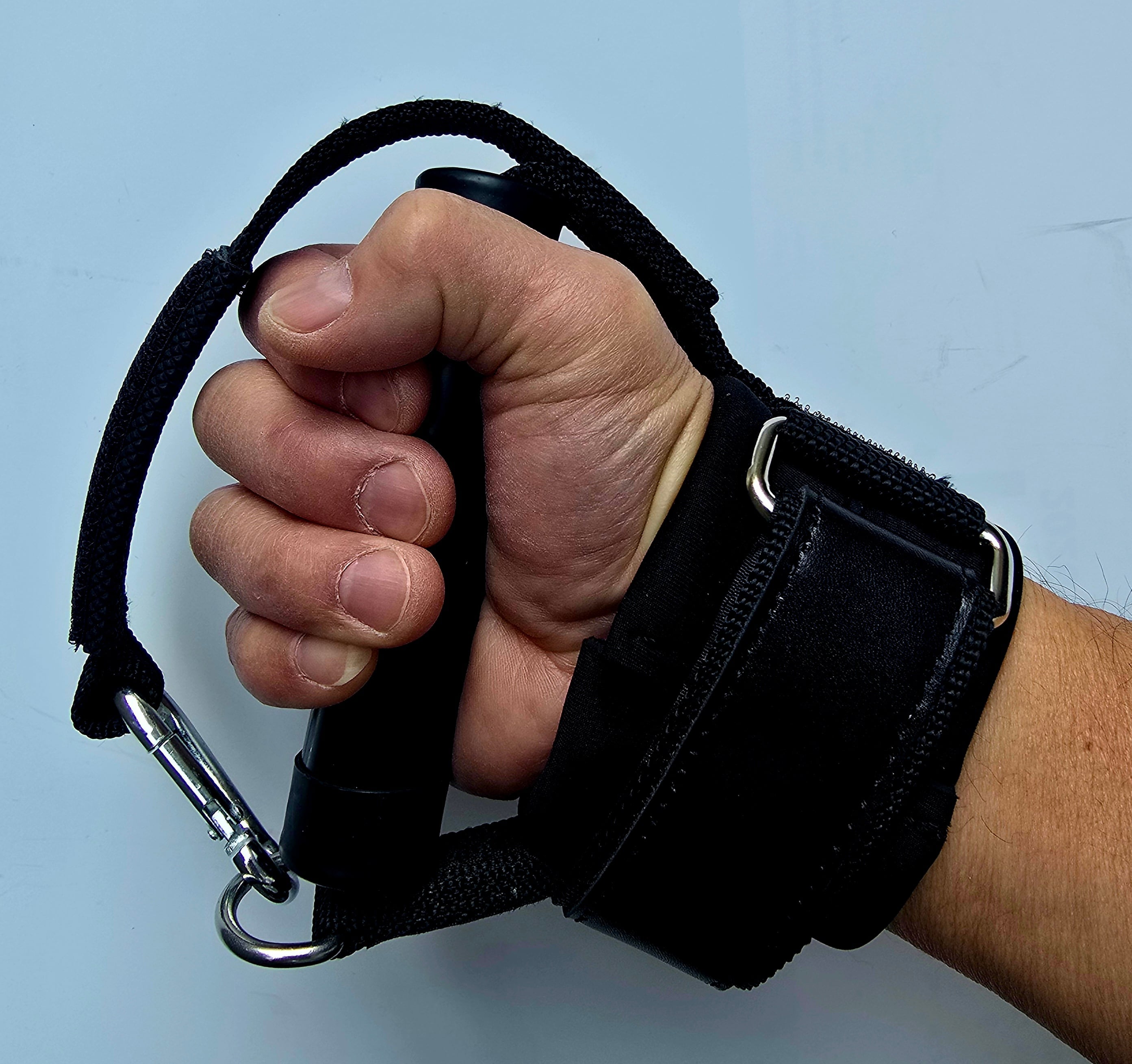 マルチケーブルギアの開発した付属ギアストラップから更にパワーグリップ化することにより、背中や肩のトレーニングにおける、引き付ける動作で多用される握力をカバーし、戻す際に握力を緩め、腕への負担軽減を実現しました。内側外側に手首を捻れる構造になっておりますので、多種類のグリップに変える事なく背中に刺激を自由自在に入れる事や、足首に巻き、お尻や内転筋などの種目にも対応。
