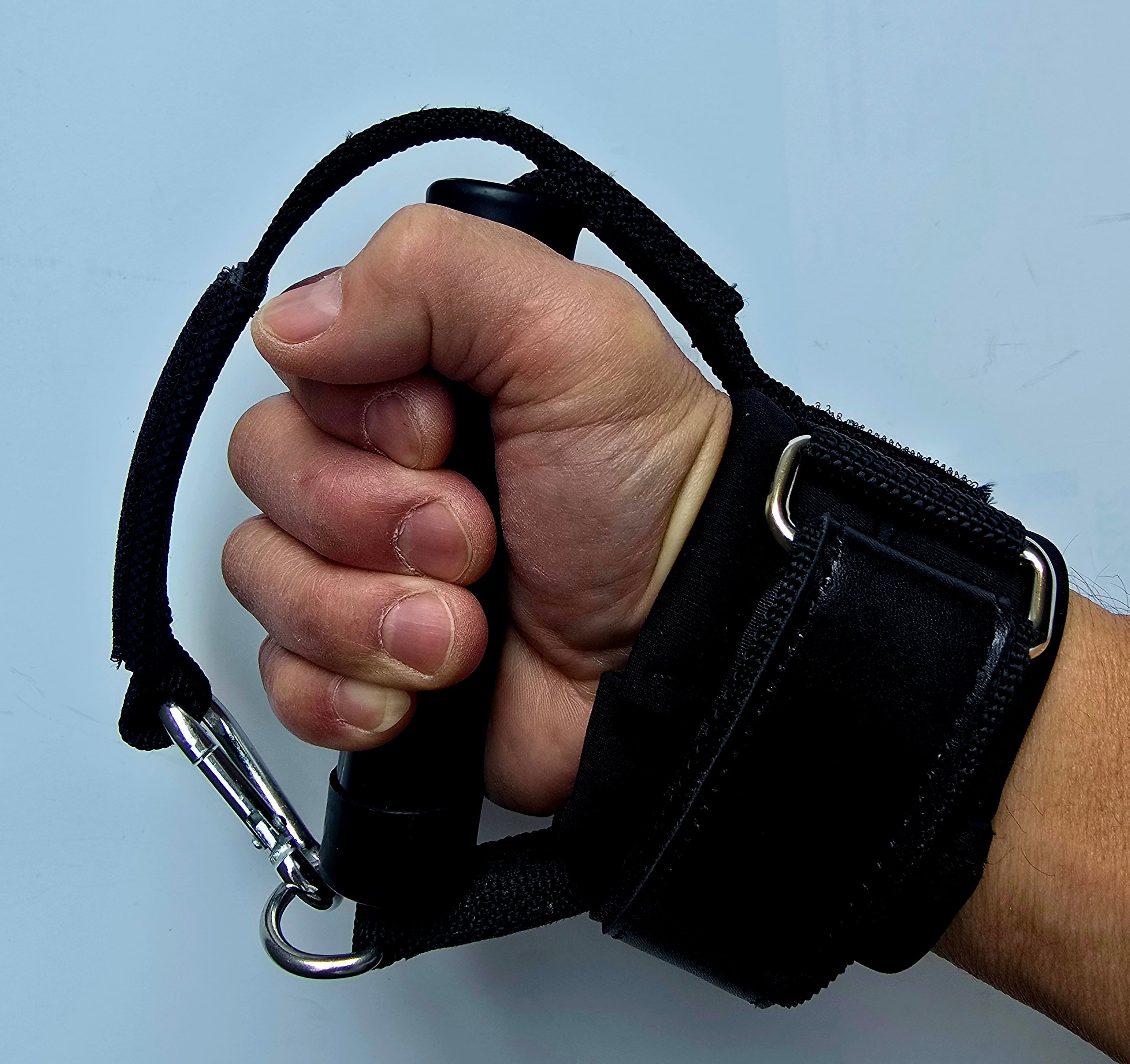 Until now, cloth or leather straps have been used to compensate for grip strength in order to maintain a firm grip on weighted grips.