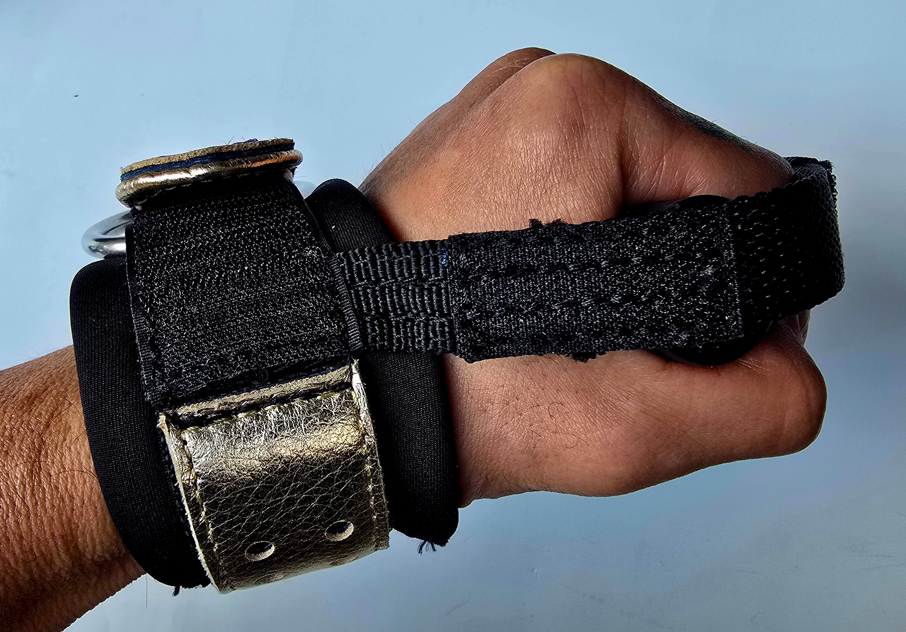 今まではウェイトグリップの握りを維持する為に、布や革のストラップを使い握力をカバーしてきました。