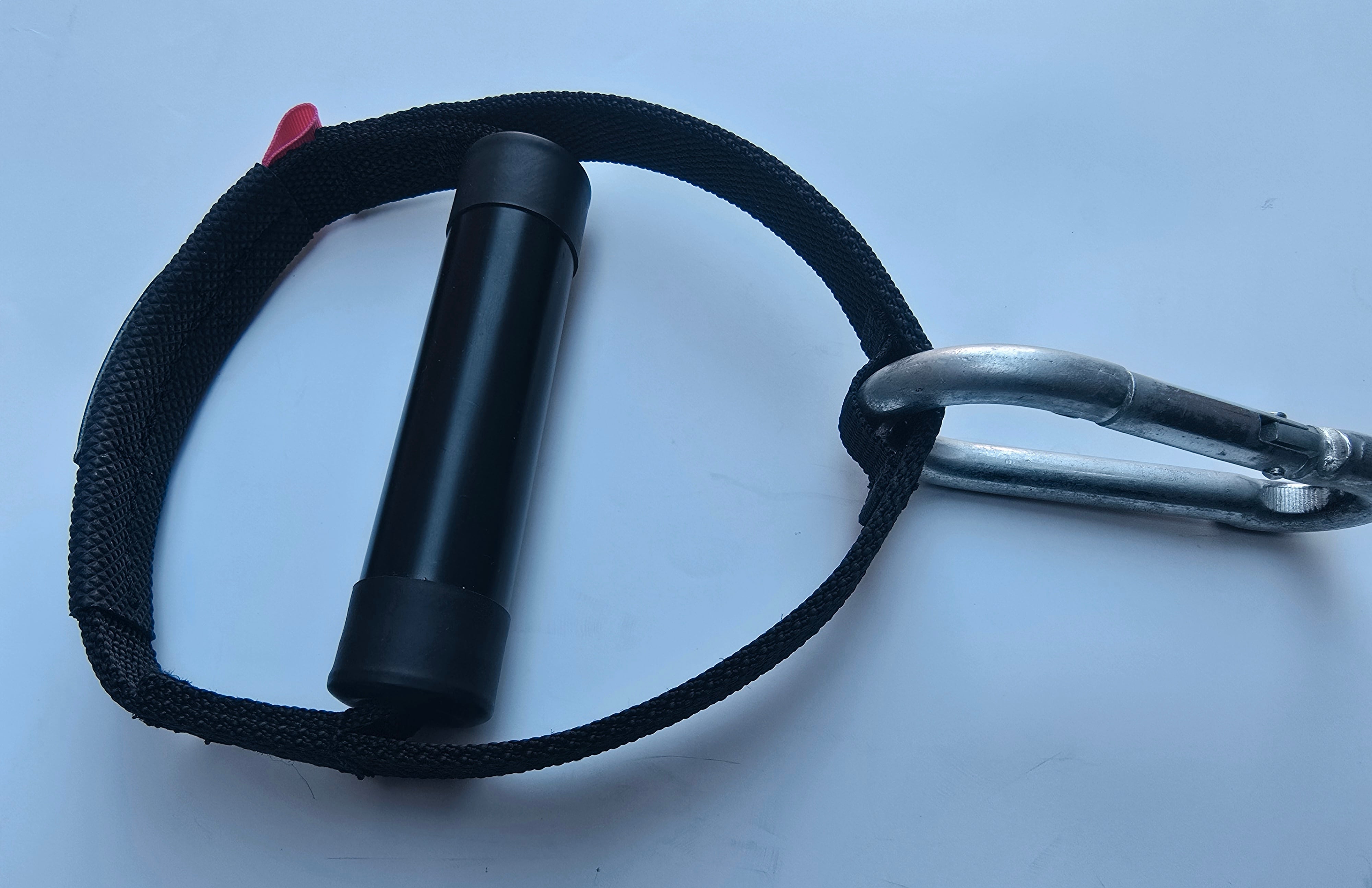 マルチケーブルギアのリングにカラビナを付け、そこに専用ストラップを接続します。